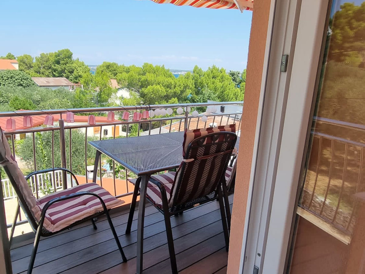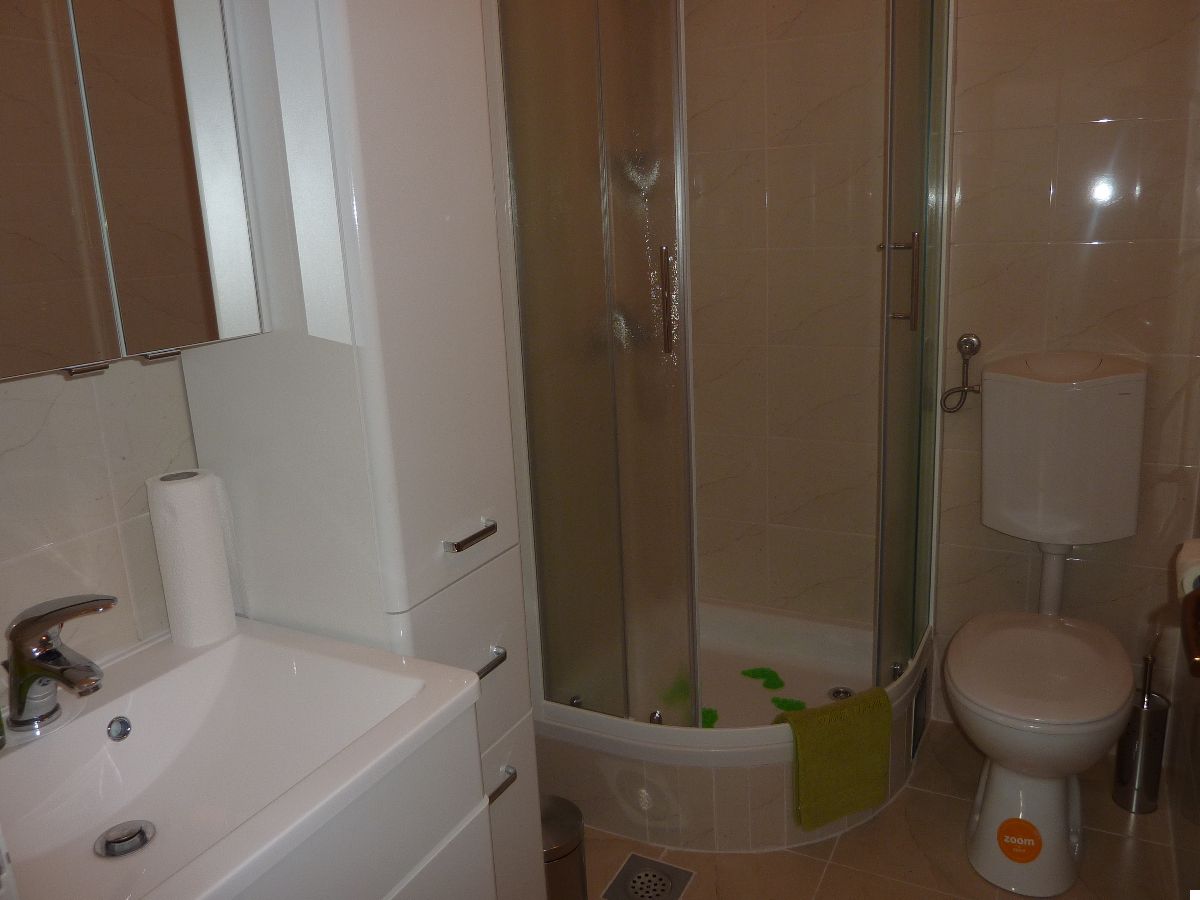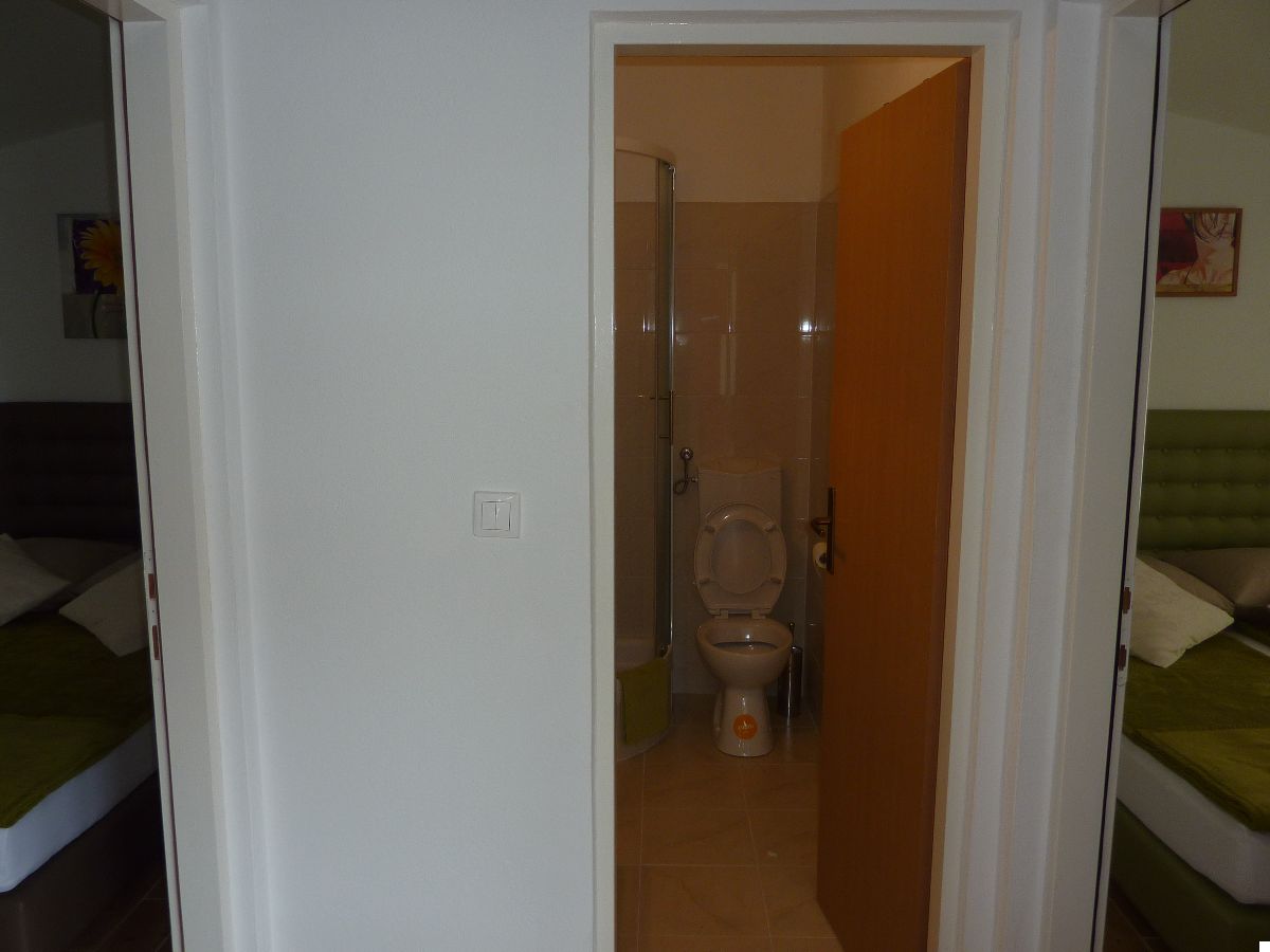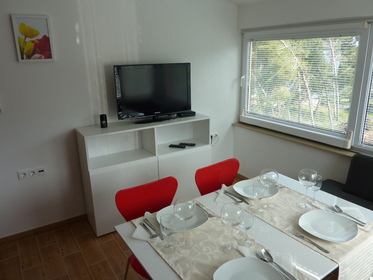 Accommodate 4 persons. Two bedrooms, bathroom. Kitchen equipped with all utensils and appliances. Living room is turned into the lounge by opening of the large sliding door. Sea view to the north and old olive-growth to the south. All rooms fully air-conditioned. Parking available.